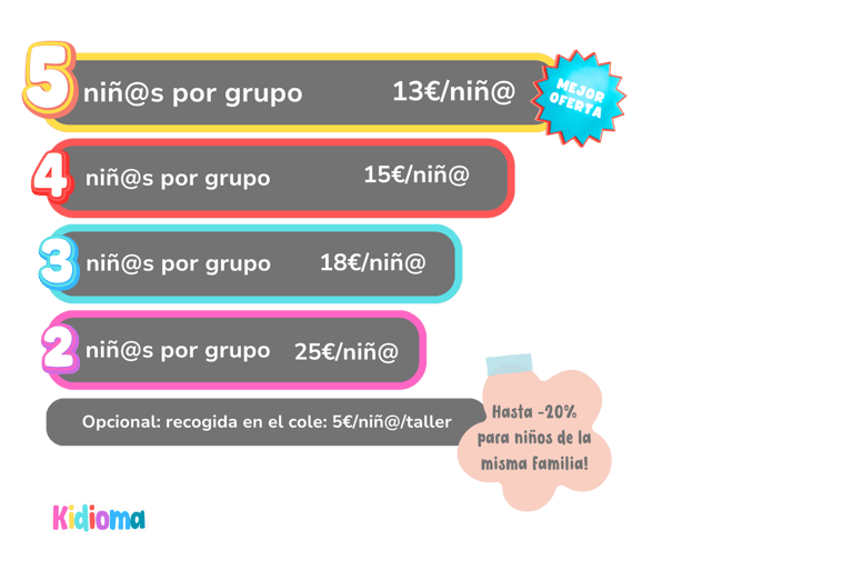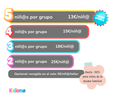 Hay descuentos si varios niños de una misma familia se inscriben a los talleres Kidioma.