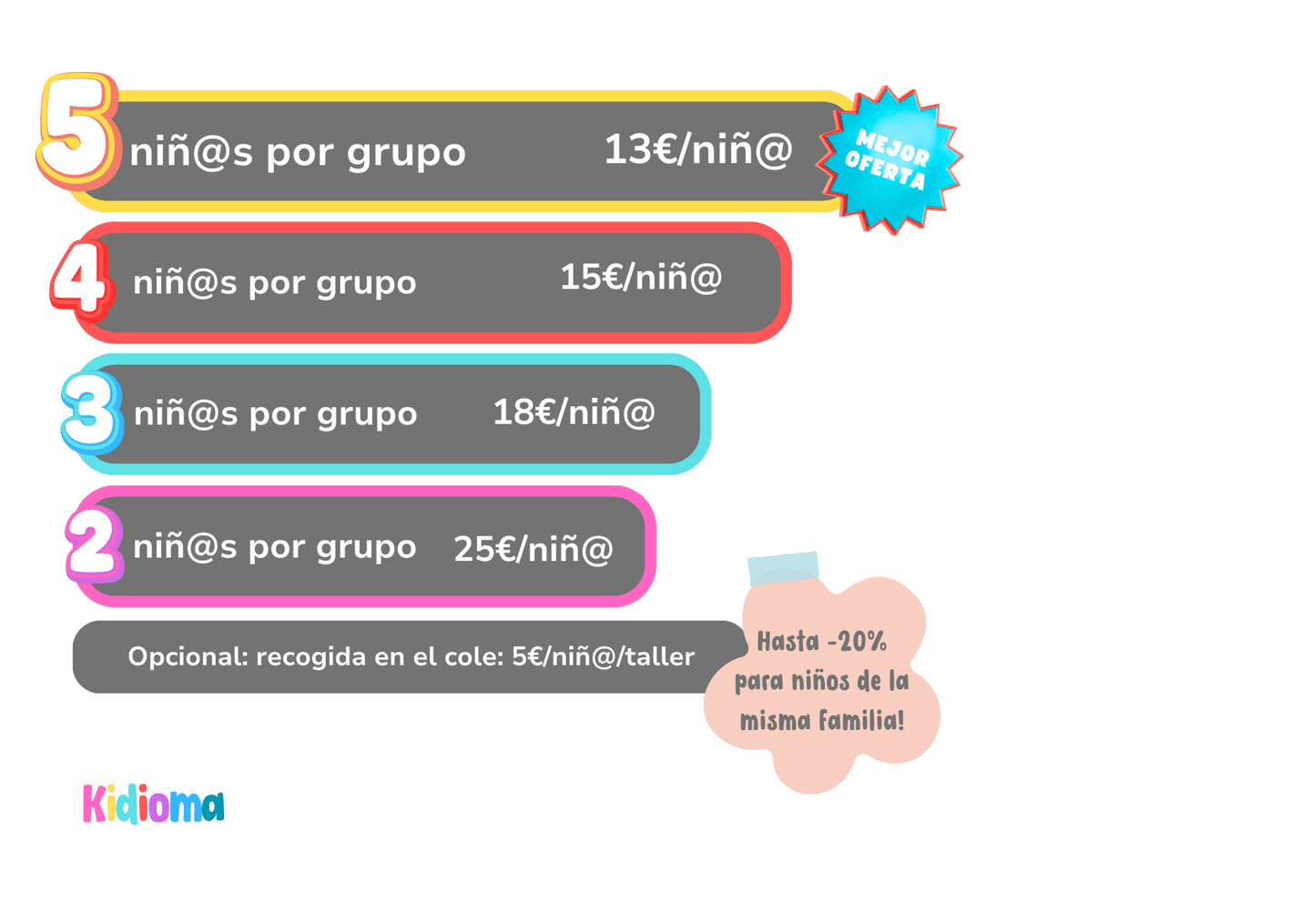 Hay descuentos si varios niños de una misma familia se inscriben a los talleres Kidioma.